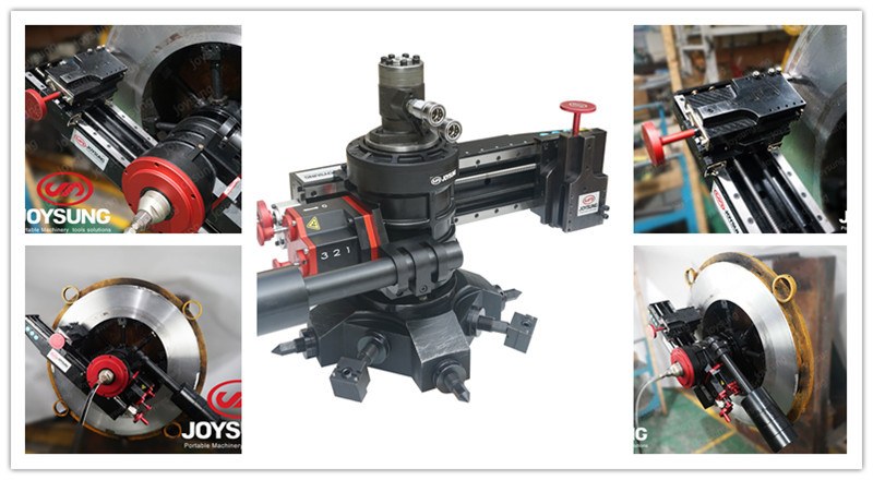 便携式法兰加工机主要用于加工各种形式的密封面(法兰,rtj,m,f,RF等)和RF内孔,外圆,端面和凸槽。
